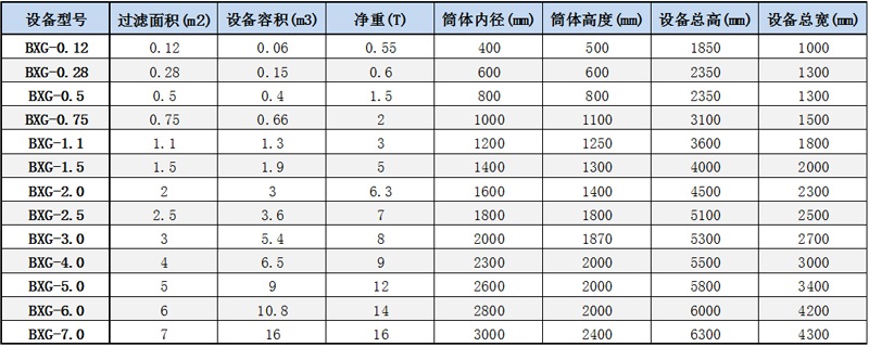平板式過濾洗滌干燥三合一 技術(shù)參數(shù)表